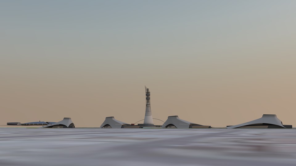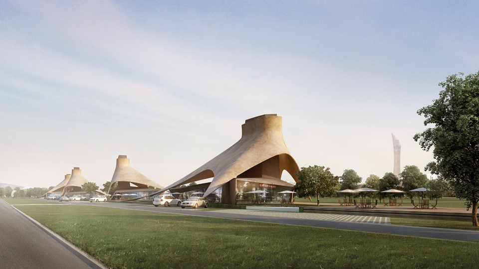 Located near the World Cup stadiums in Aspire Park, the restaurant emerges from a unique interpretation of an oasis where palm trees and mineral colonnades offer cool public spaces.